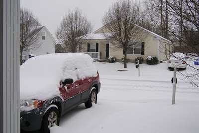 We actually got the snow, 6 inches of it, and it was beautiful. I got many visitors to the back deck. I felt guilty that I had not filled the feeders the night before, so I went out to fill up them.