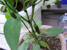 I wanted to share my little garden…in containers. I purchased my first tomato plant at Wal-Mart. The packaging said it was good for patios, so I got it. Then a few weeks later I found a cherry tomato plant that was good for containers, so I got that one too. Then I also brought one green pepper plant and one jalapeño plant. I am excited that all four plants are alive and producing fruit and vegetables. And for those of you who know me, I tend to kill any plant that I have. This year I have done well, so for only one casualty.