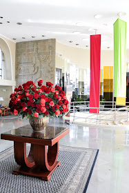 Hotel lobby with beautiful roses, one of Ecuador's larger exports.
