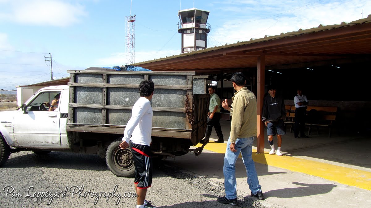 Baltra airport, no doors or windows and filled with an wonderful island breeze.